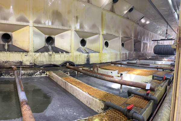 答:酸洗:將整個盤元分別浸入常溫、濃度為20-25%的三個鹽酸槽數(shù)分鐘,其目的是除去線材表面的氧化膜。